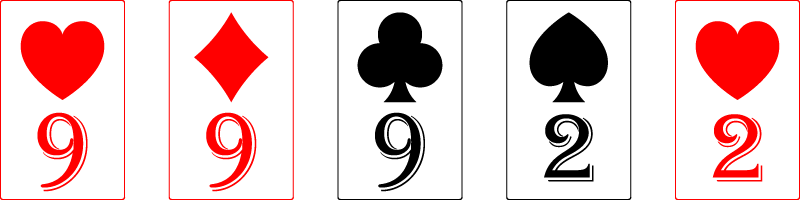 2枚の同じ数字が2組の組み合わせ(3組できた場合は数字の強い2組が勝ち)